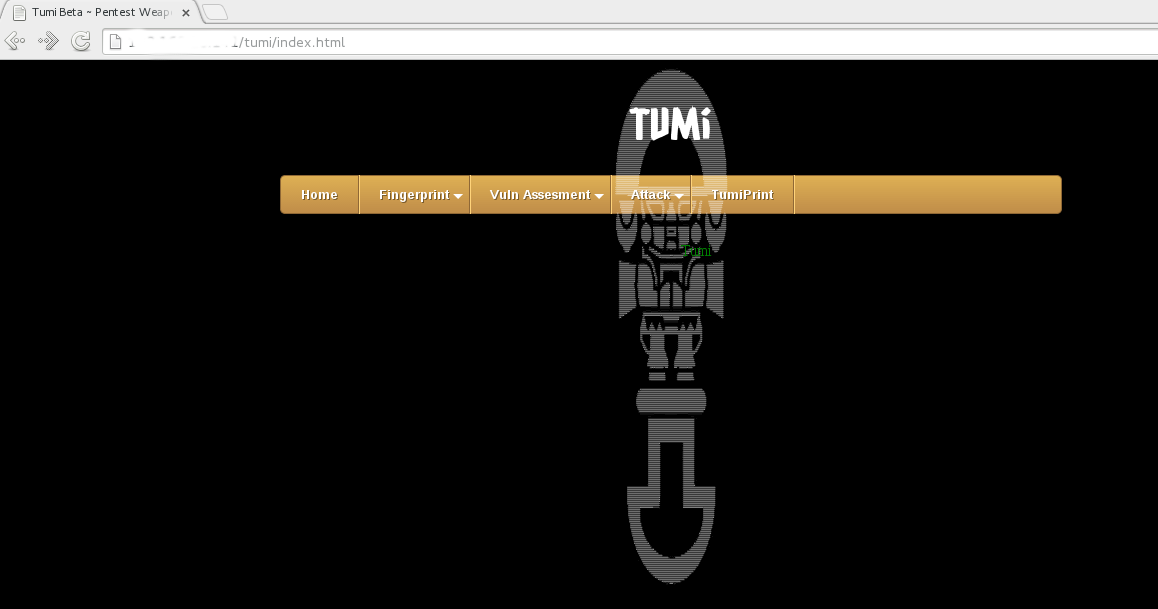 TUMI es totalmente web, así que solo bastaria Ingresar al navegador directamente de desde Kali (loopback) y si todo salio bien tendríamos lo siguiente :