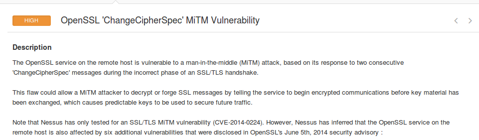 El hecho es que durante mis últimos proyectos de pentesing , he estado encontrando de manera muy recurrente en la vulnerabilidad , que Nessus reporta como “OpenSSL ‘ChangeCpherSpec’ MiTM”