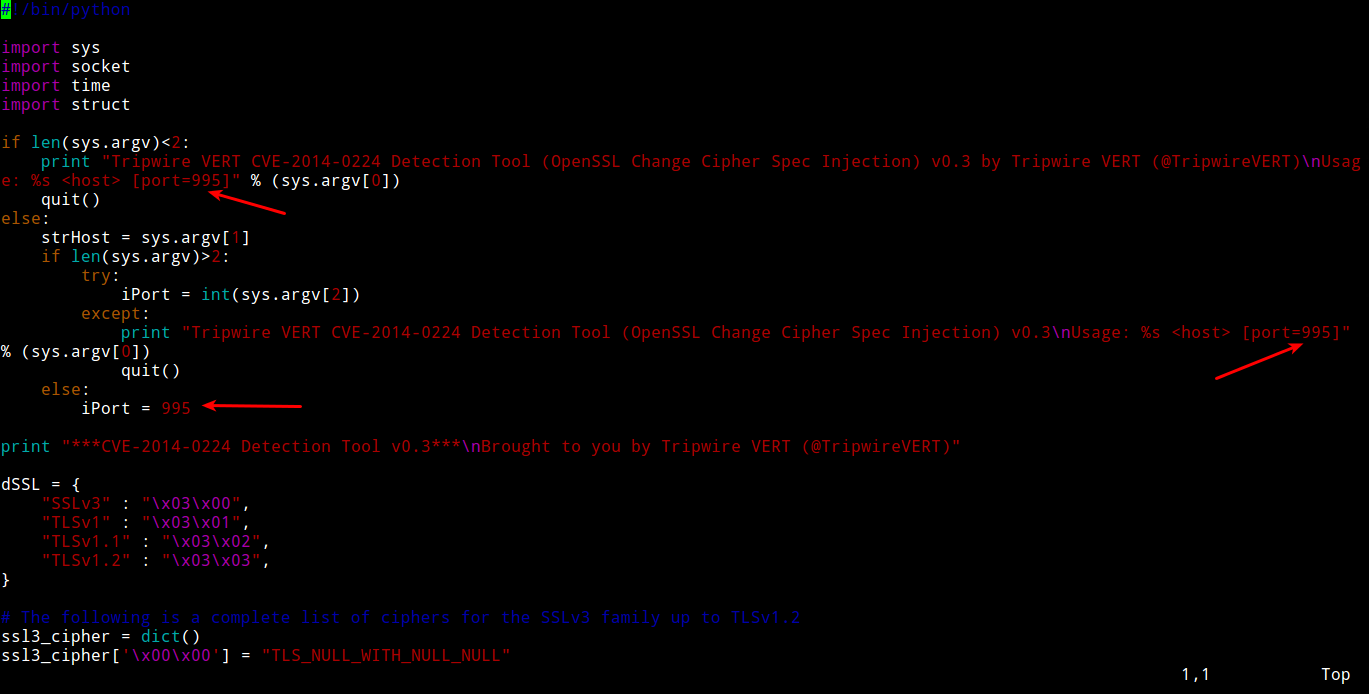 Y otra un script desarrollado por Craig Young la cual es un script en python que permite la detección de la vulnerabilidad CVE-2014-0224. La cual es posible descargar desde aquí: https://github.com/Tripwire/OpenSSL-CCS-Inject-Test