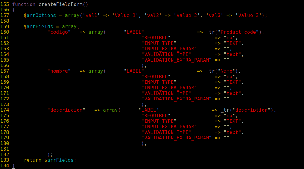 «codigo» => array( «LABEL» => _tr(«codigo»),