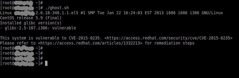 Por lo tanto, es mas que recomendable actualizar los sistemas, a continuación veremos si somos vulnerables en un sistema Centos 5.X, mediante el uso de un script desarrollado por la gente de Redhat , que valida la versión de de GLIBC instalada.