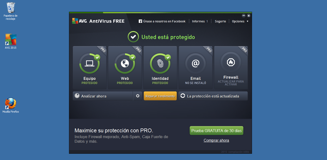 Windows 7 con AVG Antivirus en la IP 192.168.1.35