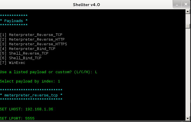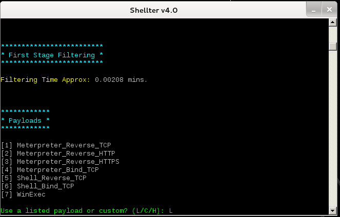 – Luego cuando aparezca la lista de payloads elegir la opción «L»