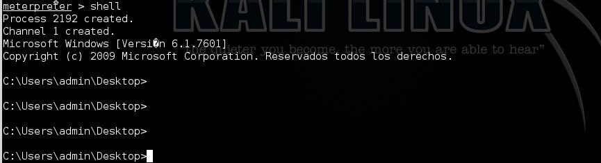 – Como podemos ver tenemos una bonita sesión de meterpreter 😀 sin que el antivirus reaccione.