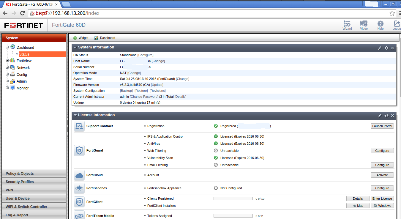 Un equipo Fortinet D60 con las licencias de IPS y Antivirus activado como se puede ver a continuación :