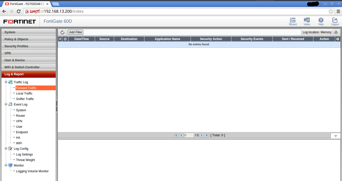 Una vez completado el ataque, vamos al equipo y vemos que no tenemos el apartado «Security Log/Intrusion Protection» es decir no registra y no lo bloquea.