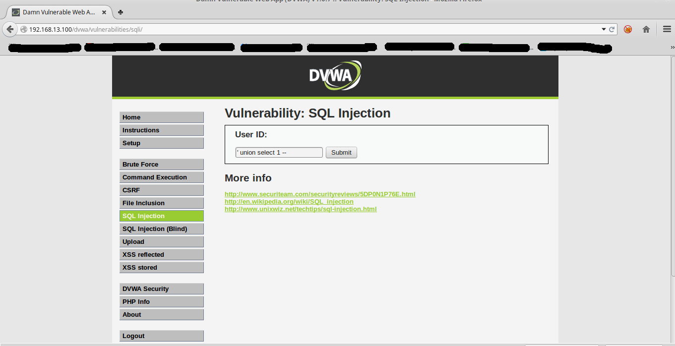 Luego para validar que el IPS se encuentre correctamente configurado realizamos una prueba básica de SQLI para verificar que bloquee correctamente.