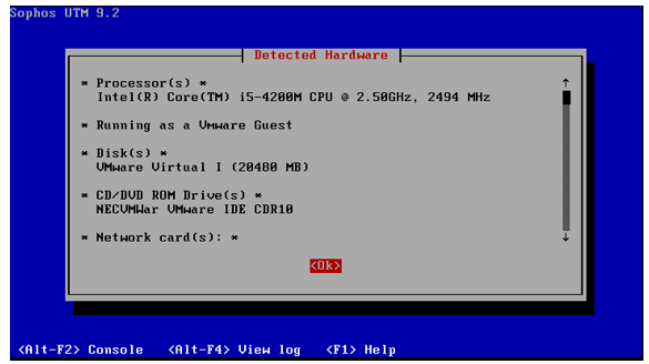 ** La maquinar virtual SOPHOS, detectara las características de HW:
