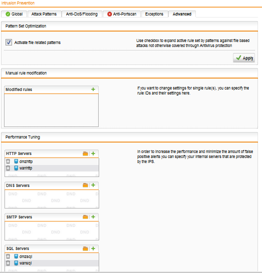 En esta sección podemos amplificar las firmas pero principalmente relacionadas a virus y también podemos «tunear» el ips a ciertos servidores que deseamos que estén protegidos.