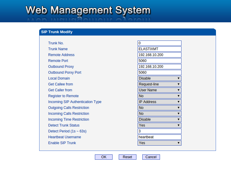 En este caso ya tenemos reconocida la dirección IP del Gateway en el SIP TRUNK.