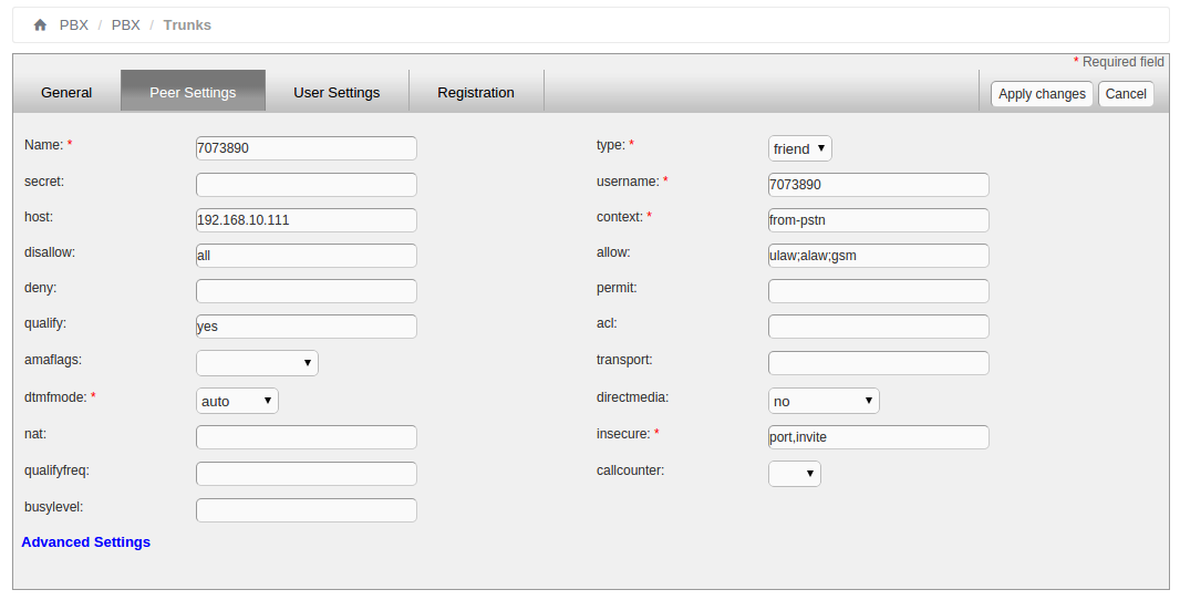 - La configuración del Trunk SIP solo fue probada en un equipo Dinstar MTG1000 , sin embargo no se descarta que pueda funcionar para otro tipo de gateways.