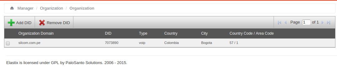 Luego vamos a asignar asignarle el DID creado a la organización SILCOM en Manager / Organizaction / Organization/ Add DID y quedaría de la siguiente forma: