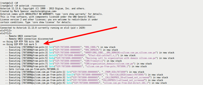 Como vemos ingresa la llamada , ahora algunas capturas de lo que muestra el CLI