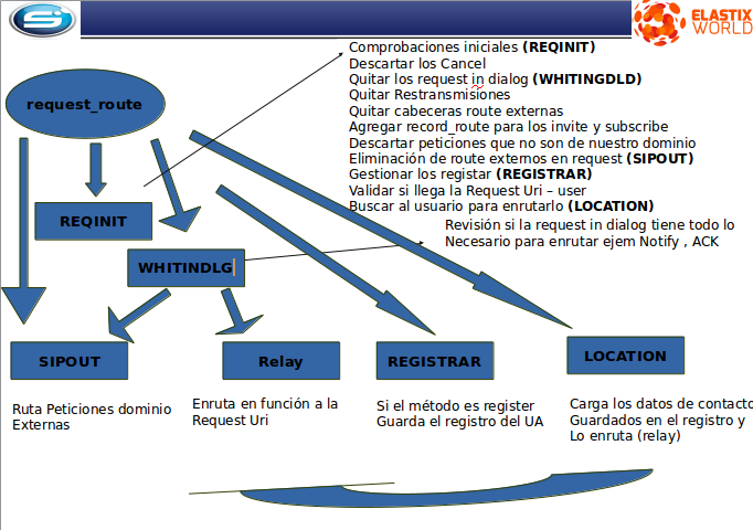 Como se puede apreciar todo parte del bloque «Main» o «Request Route» y va ingresando a los demás bloques en donde cada uno tiene un objetivo puntual aplicado a la solicitud SIP entrante.