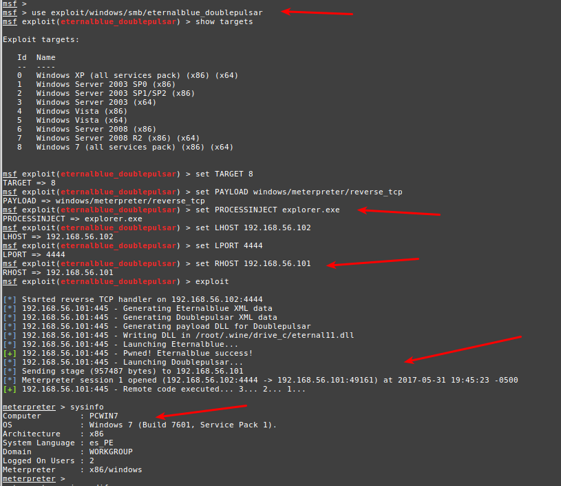 2- Explotando la Vulnerabilidad MS17-010 (Wanacry) con Metasploit