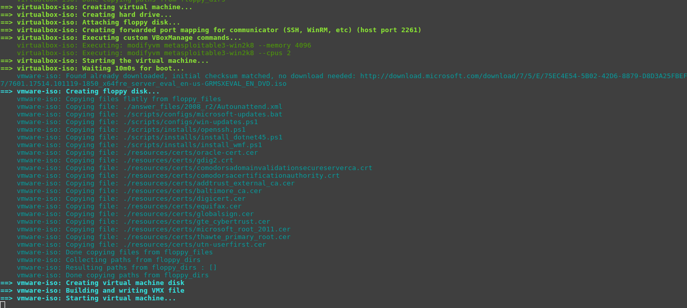 Luego comienza la construcción de la maquina virtual