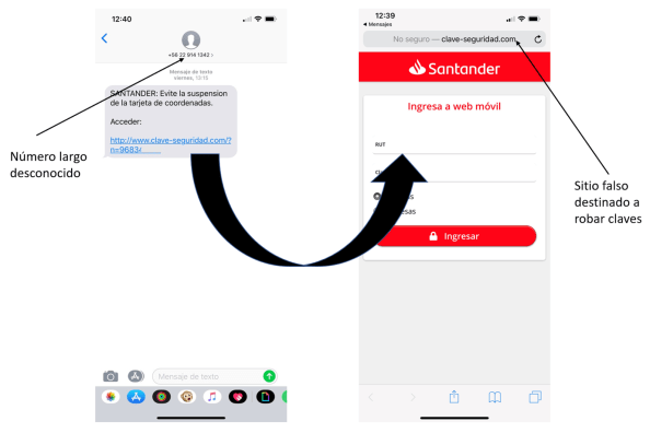 Esta forma de envío ha crecido significativamente también, enviando direcciones de internet o URL haciendo pasar por alguna entidad bancaria o empresa, esto es porque aprovechan que las personas hacen clic en los enlaces y no verifican si la dirección de internet es verdadera desde los teléfonos celulares o dispositivos móviles, de esta forma recogen no solo información bancaria si no también información personal que puede ser usada luego en ataques mas focalizados, aquí unos ejemplos: