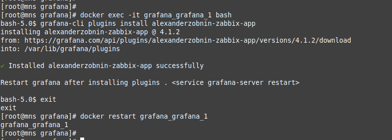 3.3.- Instalar el plug-in de Zabbix en el contenedor de Grafana.