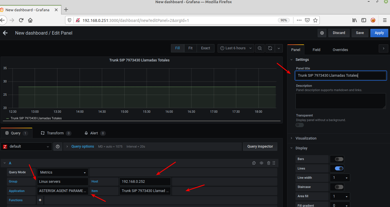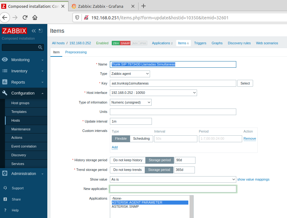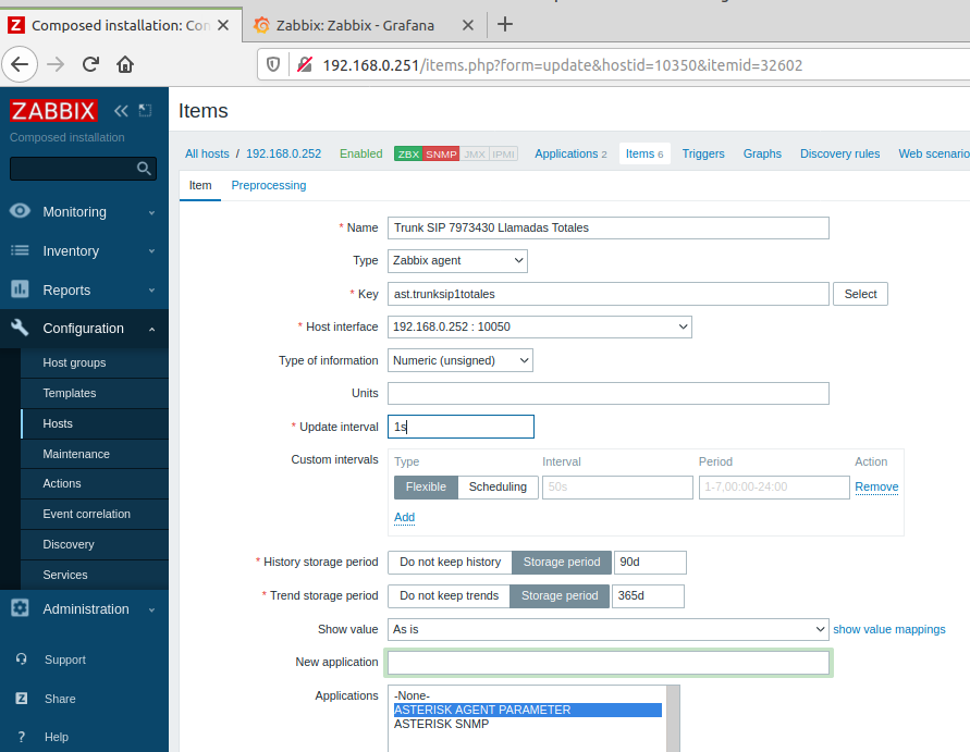Una vez que hemos conseguidor mostrar los datos de Asterisk en Zabbix ahora es necesario graficarlo con Grafana.