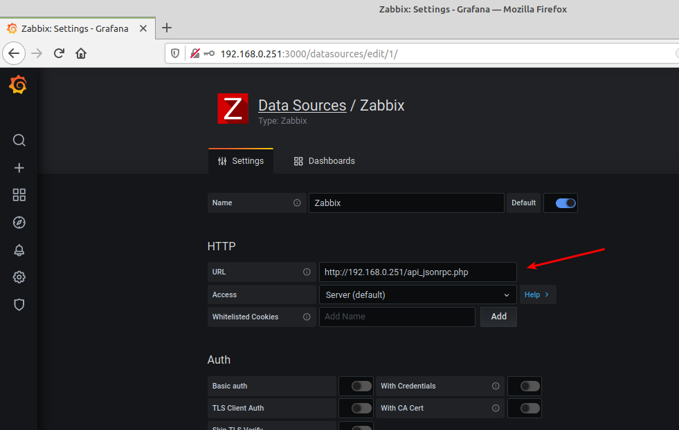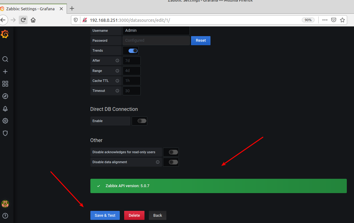 6.1.- Enlazar Grafana para que pueda consumir la API de Zabbix.