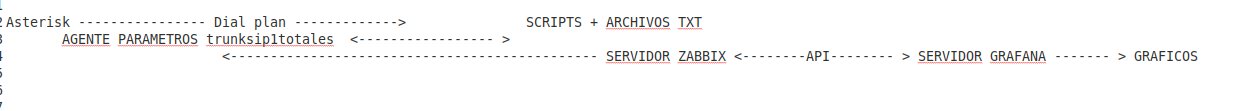 Es increible como Docker ha cambiado todo, sobre todo la forma como ha reducido los tiempos de configuracion y despliegue en las instalaciones, a continuacion veremos como desplegar una arquitectura de monitoreo grafico con Grafana para las troncales SIP de Asterisk. para ello usaremos como intermediario a Zabbix que nos ayudara a extraer los datos de Asterisk con ayuda de Algunos scripts personalizados.